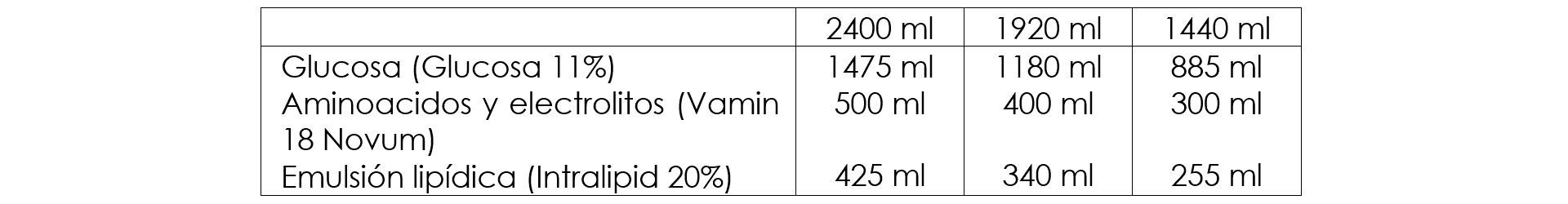 Se utiliza como parte de una dieta intravenosa equilibrada, conjuntamente con sales, elementos traza y vitaminas para cumplir de forma completa con sus necesidades nutricionales
